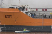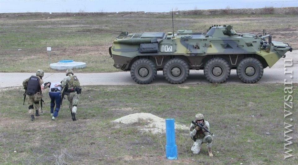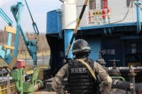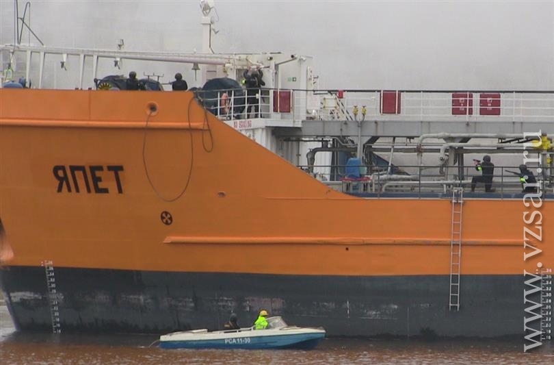 Следующий этап тренировки прошел на борту условно груженного нефтепродуктами танкера, который по легенде учений захватили бандиты. Охранники предприятия и наряды вневедомственной охраны блокировали подъездные пути к причалу и территорию завода, после чего начались переговоры с преступниками, которые закончились безрезультатно.
