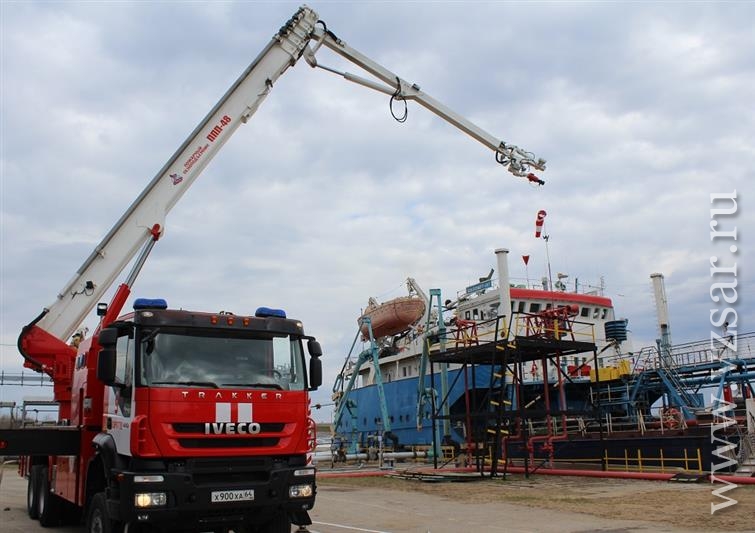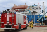 В завершение занятия специалисты противопожарной безопасности и газоспасатели ПАО "Саратовский НПЗ" отработали задачи по ликвидации условного пожара, возникшего на судне.