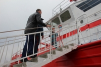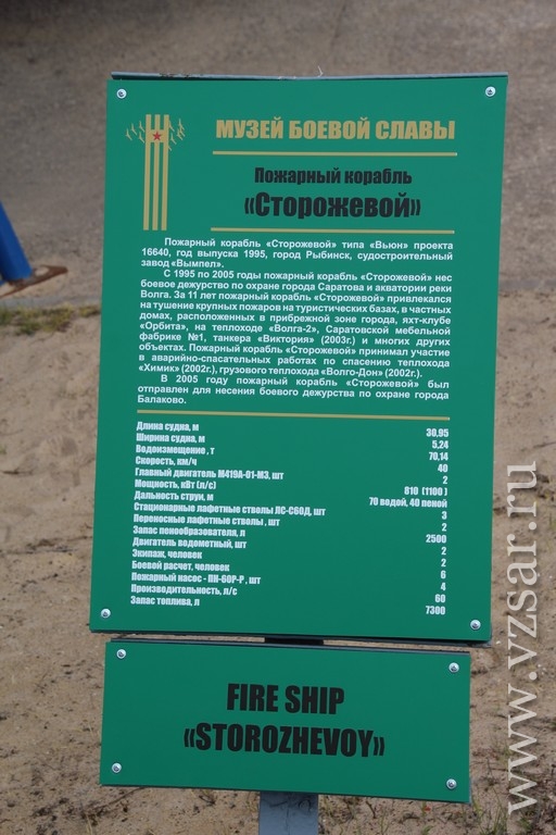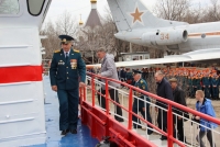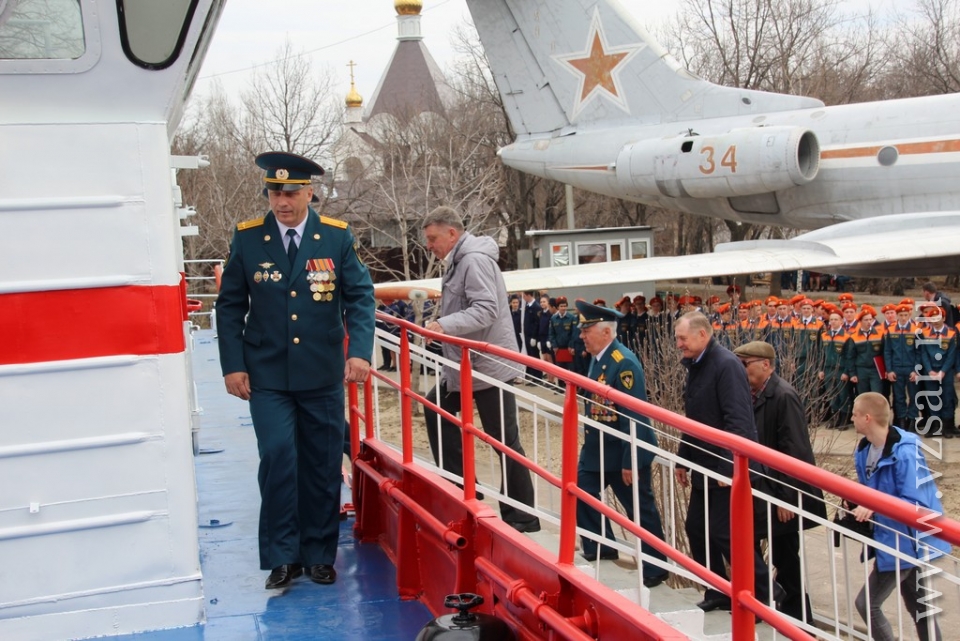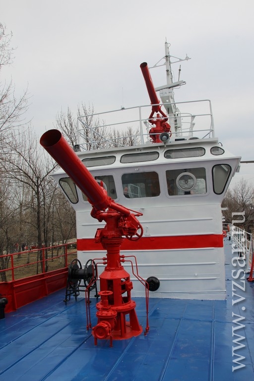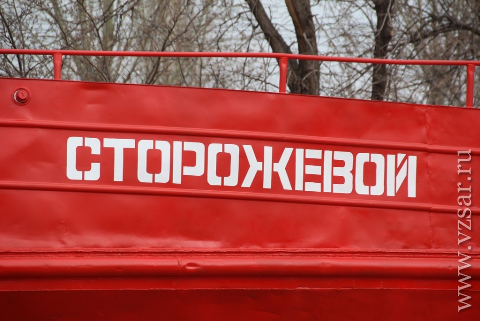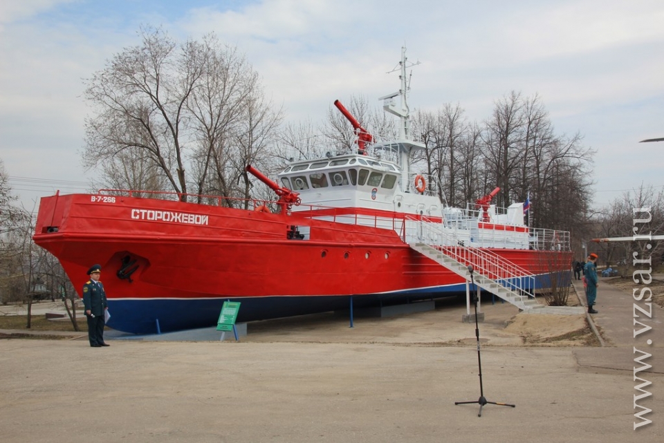"Перед вами не просто пожарный корабль, а корабль-легенда. Он был построен в 1995 году в Рыбинске. С 1995 по 2005 годы "Сторожевой" выполнил множество серьезных задач, потом работал в Балакове", - огласил ведущий.