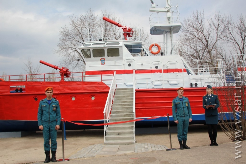 Сегодня в саратовском Парке Победы на Соколовой горе прошла торжественная церемония открытия экспоната "Пожарный корабль" на аллее МЧС. В мероприятии приняли участие общественники, депутаты и воспитанники военных училищ.