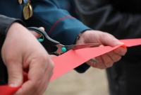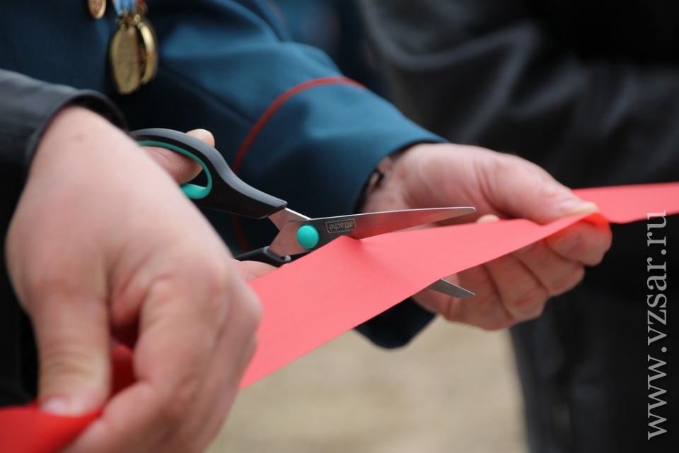 После этого Игорь Качев, Борис Шинчук и Василий Разделкин перерезали ленточку. Новый экспонат был объявлен открытым.