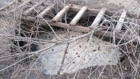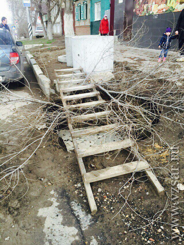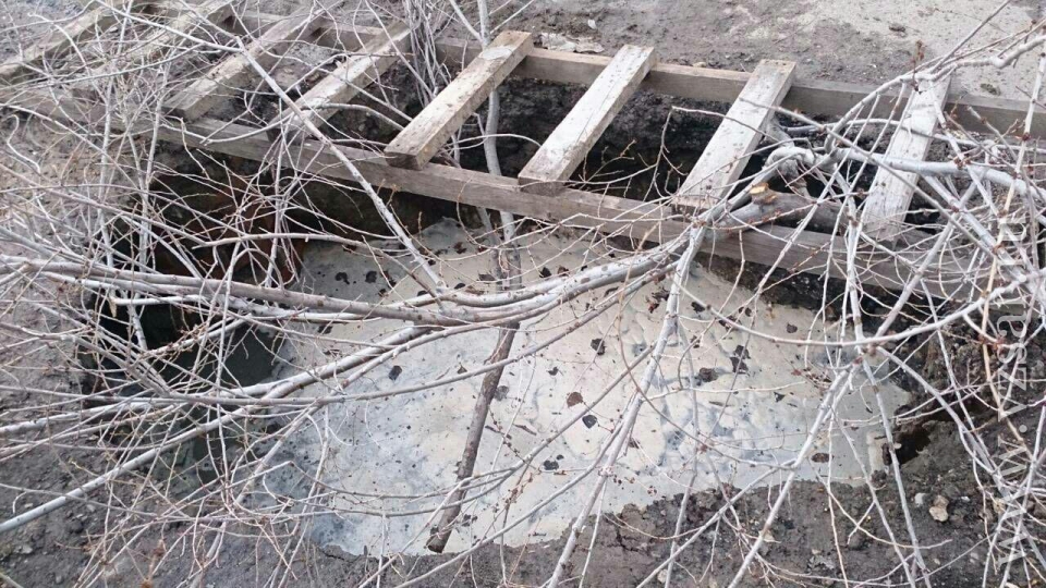 На фотографиях видно, что яму забросали сухими ветками и прикрыли деревянной лестницей.