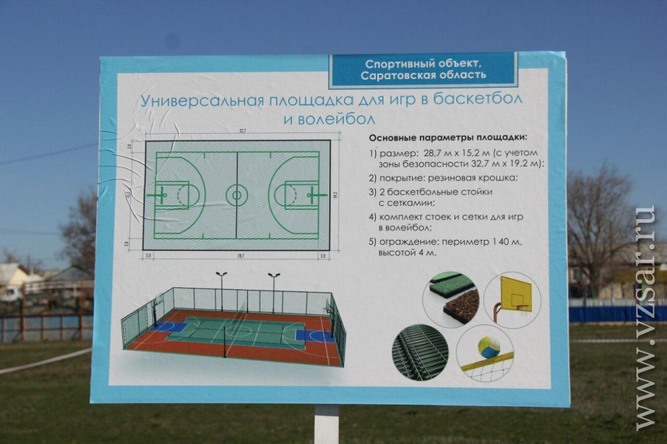 Первой точкой посещения стала озинская школа. Здесь будет обустроено футбольное поле со всепогодным покрытием. Предполагается, что зимой поле зальют под каток. Кроме того, запланированы баскетбольные площадки, беговые дорожки, а также площадки для воркаута. Такой же спонсорский проект реализуется в Ивантеевке, Перелюбе, Питерке, Турках и других райцентрах области.