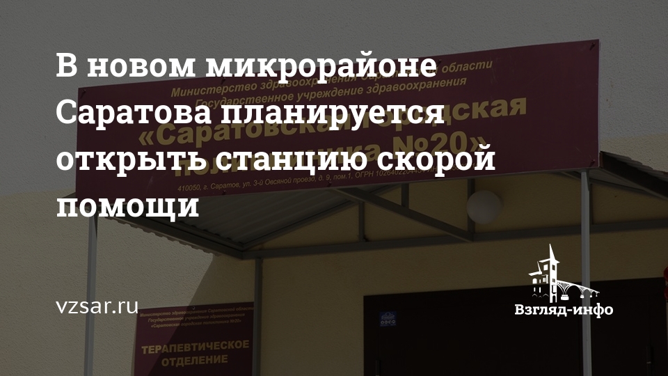 В новом микрорайоне Саратова планируется открыть станцию скорой помощи