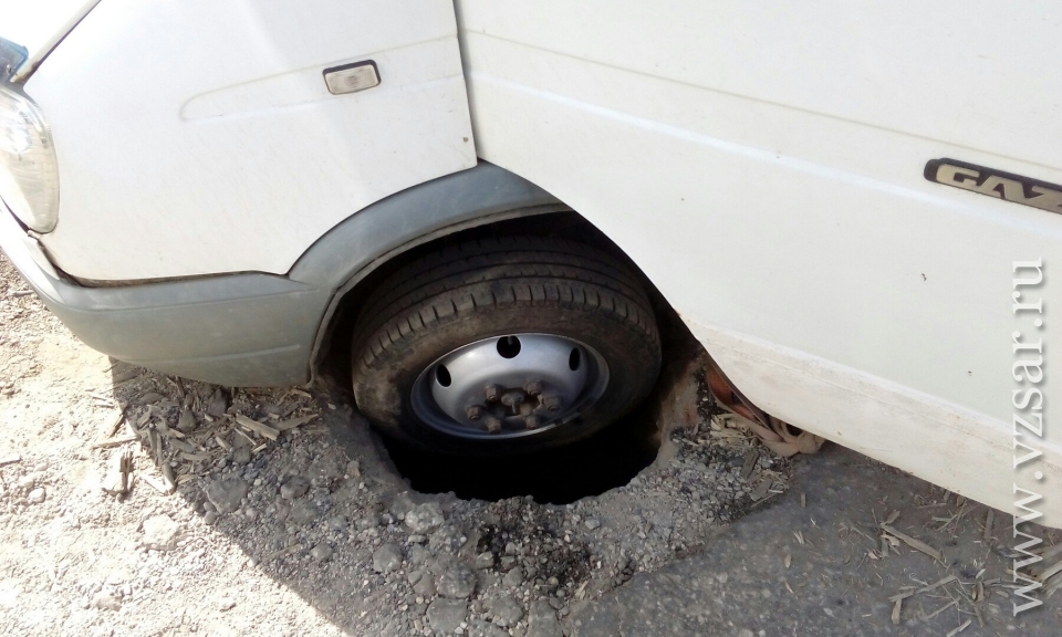 В подтверждение своих слов он опубликовал фото с места происшествия в группе "Саратов Life". На снимках видно, что машина угодила передним левым колесом в открытый люк и немного завалилась на бок.