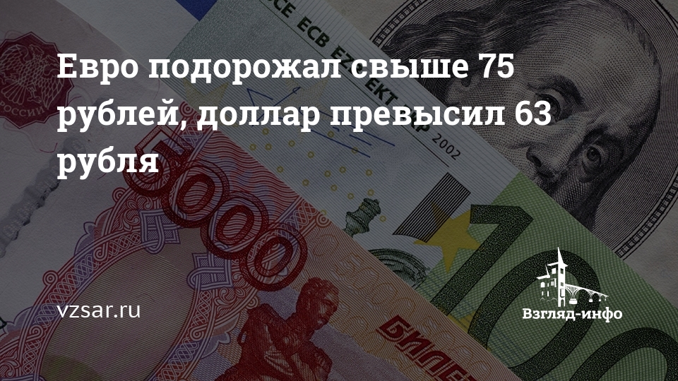 Евро подорожал свыше 75 рублей, доллар превысил 63 рубля