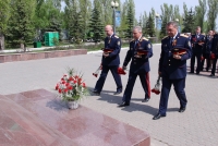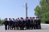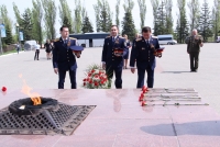 Накануне 73-й годовщины Дня Победы гости возложили цветы к Вечному огню и почтили минутой молчания тех, кто отдал свою жизнь ради мирного неба. Затем они сделали общий фотоснимок у подножия мемориала "Журавли" и поднялись на смотровую площадку.