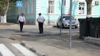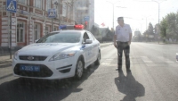 С 8.00 водителям приходится обьезжать оцепление, выставленное Госавтоинспекцией в целях безопасности участников праздника.