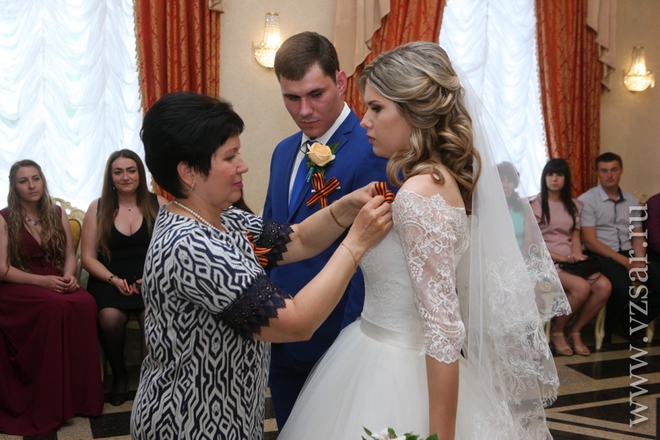"Молодожены Ольга Селезнева и Павел Иванов отметили, что пожелали зарегистрировать брак в день празднования 73-й годовщины Великой Победы из патриотических чувств, в знак памяти о героическом прошлом, благодарности своим прадедам, отдавшим жизнь для Победы", - рассказали сотрудники Дворца бракосочетаний.