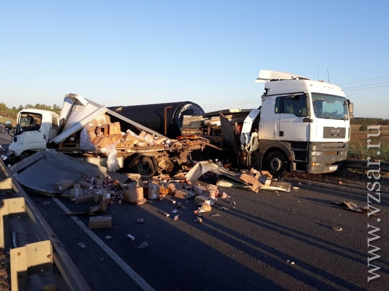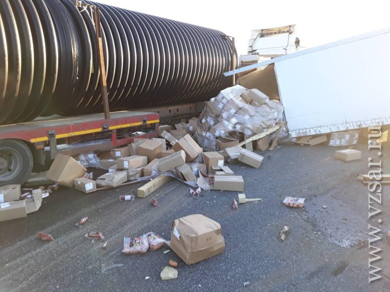 Инцидент произошел вчера в 5.00 на 397-м километре автодороги М5 "Урал" в Сасовском районе Рязанской области. Виновником аварии указан 50-летний саратовец за рулем груженого колбасой фургона "Hyundai".