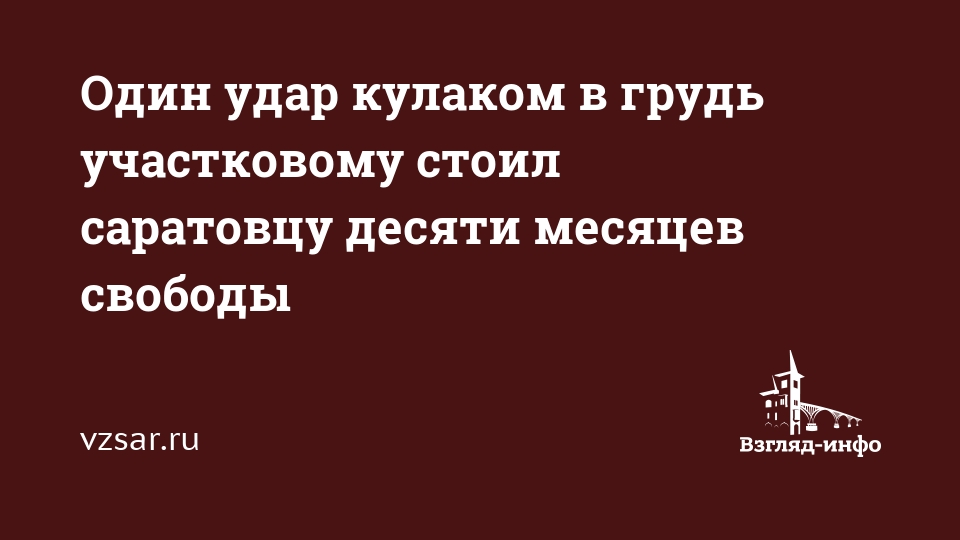 Один удар кулаком в грудь участковому стоил саратовцу десяти месяцев свободы