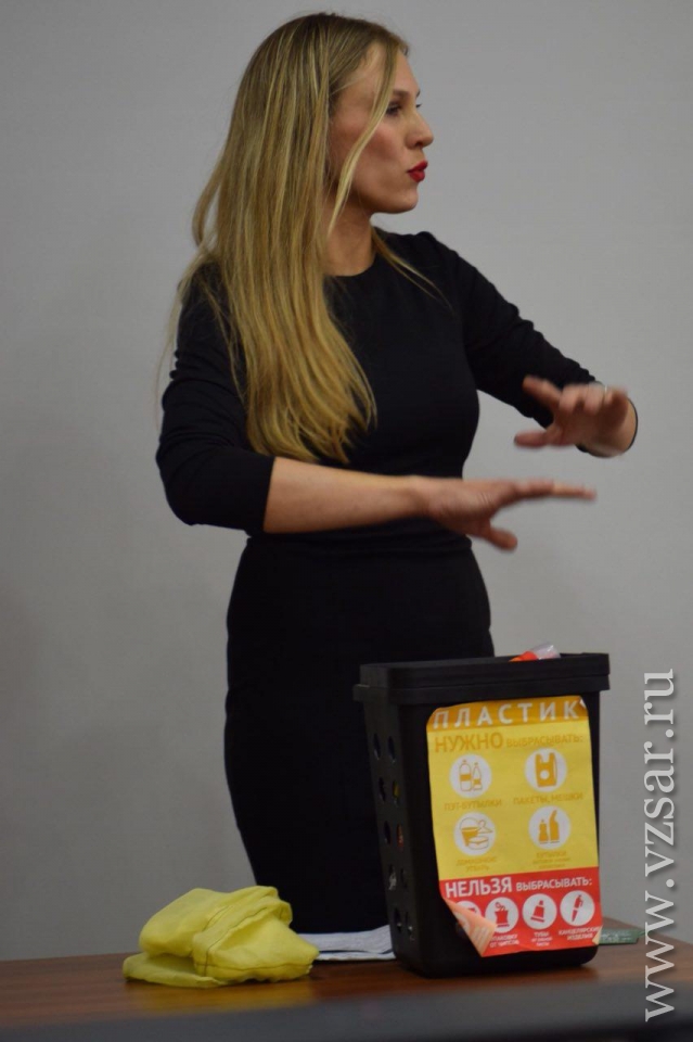 Чернецова начала доставать разный мусор и рассказывать, что научилась сортировать его: