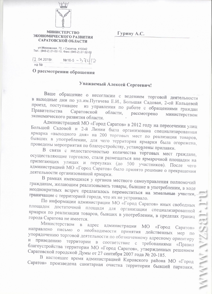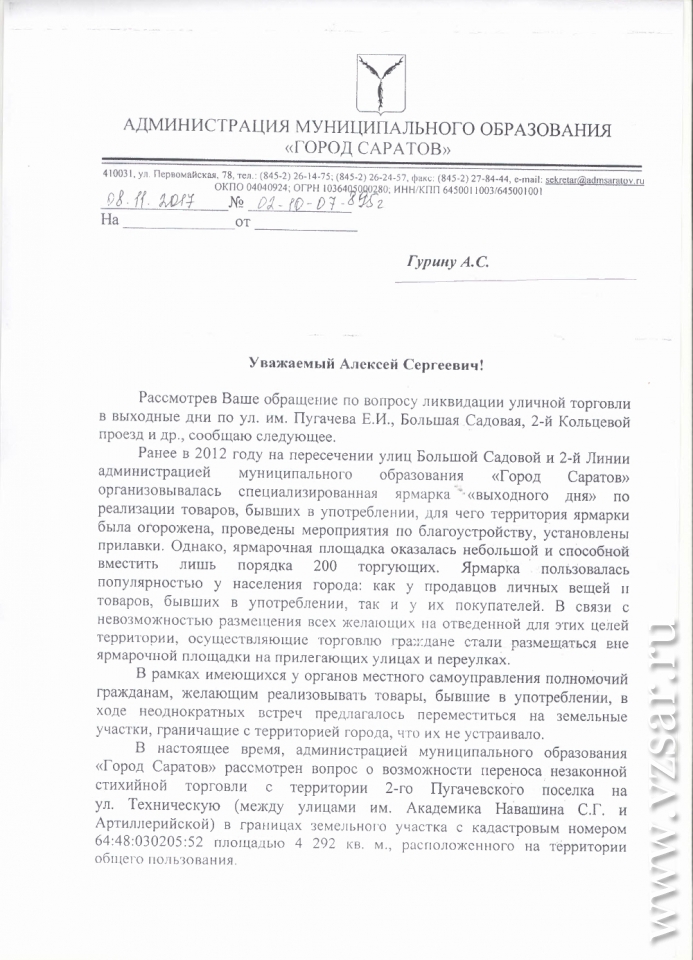 "Несколько лет назад администрация Саратова решила переместить торговцев б/у товаров, которые хаотично располагались по выходным дням в сквере вдоль трамвайных путей недалеко от Сенного рынка.