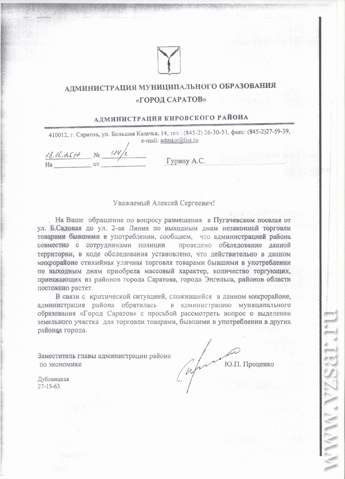 Автор письма утверждает, что неоднократно обращался в органы власти (полицию, мэрию, администрацию Кировского района, правительство области) с просьбой навести порядок и прекратить незаконную торговлю. В распоряжении ИА "Взгляд-инфо" есть тексты соответствующих обращений.