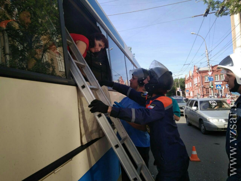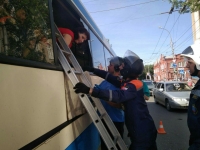 На фотографиях, сделанных очевидцами, видно, как спасатели спускают людей на землю с помощью лестницы. На месте работали сотрудники областной службы спасения, ЦМК и ГУ МЧС региона.