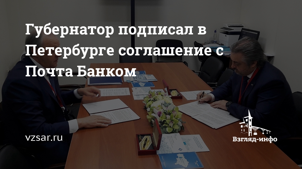 Документ подписали губернатор Валерий Радаев и президент-председатель правления Почта Банка Дмитрий Руденко.