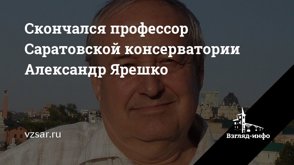 Сегодня ночью в Саратове на 75-м году жизни скоропостижно скончался фольклорист-исследователь, общественный деятель, профессор Саратовской консерватории Александр Ярешко. Об этом сообщает официальный сайт консерватории.
