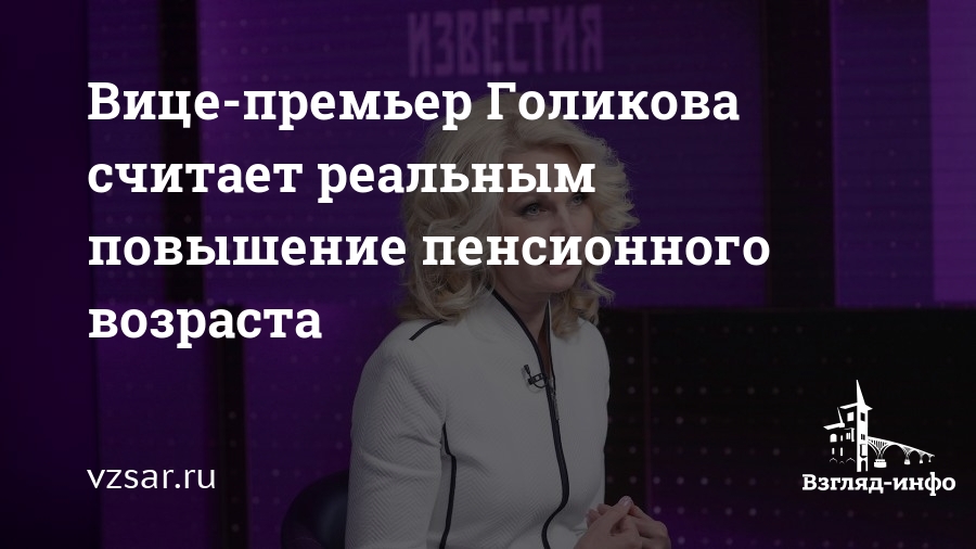 Вице-премьер Голикова считает реальным повышение пенсионного возраста