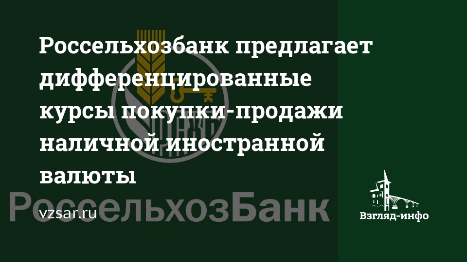 Саратовский филиал Россельхозбанка информирует об установлении в офисах филиала дифференцированных курсов покупки-продажи наличной иностранной валюты, курс зависит от суммы операции.