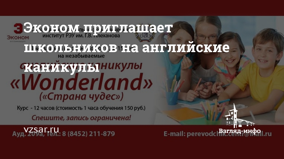 Центр подготовки переводчиков Саратовского социально-экономического института РЭУ имени Плеханова приглашает школьников от 8 до 15 лет на незабываемые летние английские каникулы "Wonderland" ("Страна чудес").