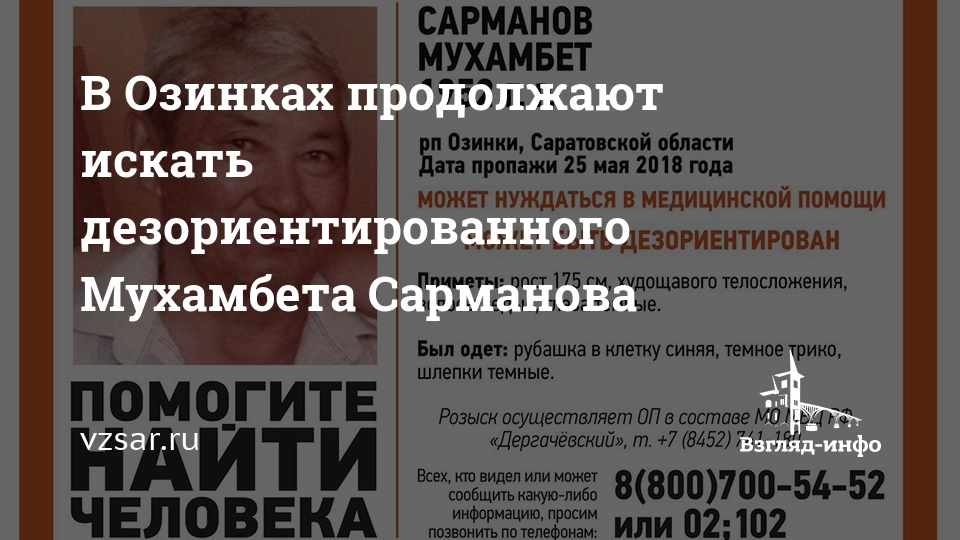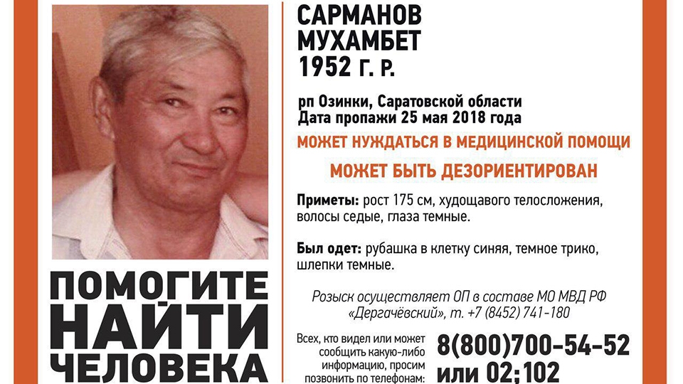 В Озинках продолжают искать дезориентированного Мухамбета Сарманова