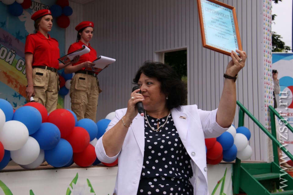 Руководитель приемной депутата Саратовской областной думы Сергея Курихина Людмила Урмаева вручила в подарок лагерю сертификат на приобретение потолочного экрана.