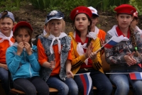 Подростки отметили открытие смены патриотическими песнями и танцами. В завершение вожатые исполнили степ, а юные спортсмены показали несколько элементов баскетбола, бокса и греко-римской борьбы.