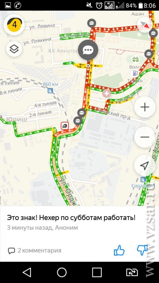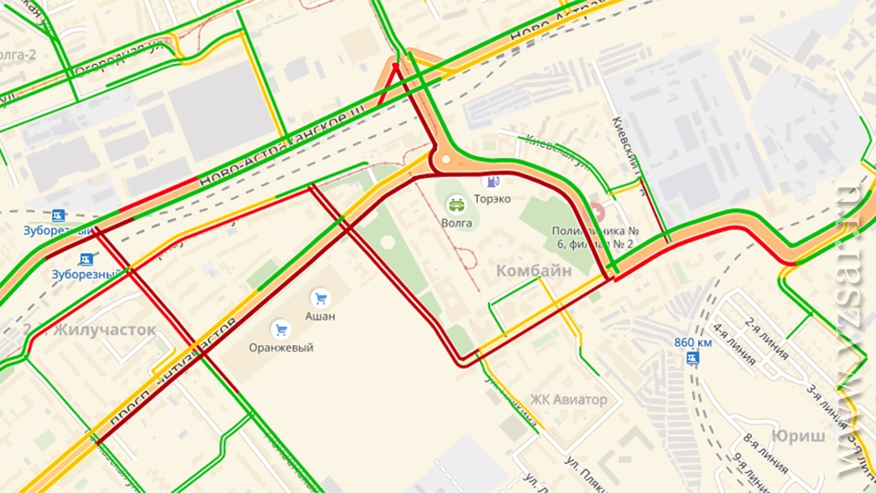 Согласно "Яндекс.Карты" пробка начинается на пересечении Кавказской и проспекта Энтузиастов. Машины едут со скоростью 3 километра в час. Также багровым окрашены улицы Авиастроителей, 7-я Нагорная, Киевский проезд и часть Ново-Астраханского шоссе.