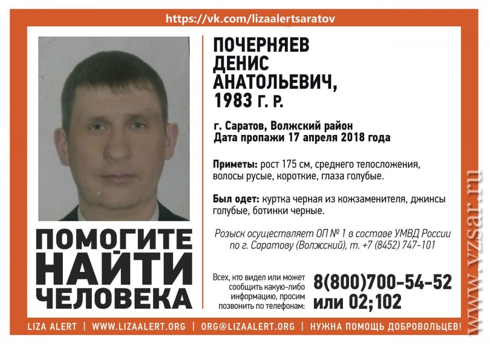 В Волжском районе Саратова три месяца разыскивается 35-летний Денис Почерняев. Мужчина пропал без вести 17 апреля, сообщают волонтеры "Лиза Алерт Саратов".