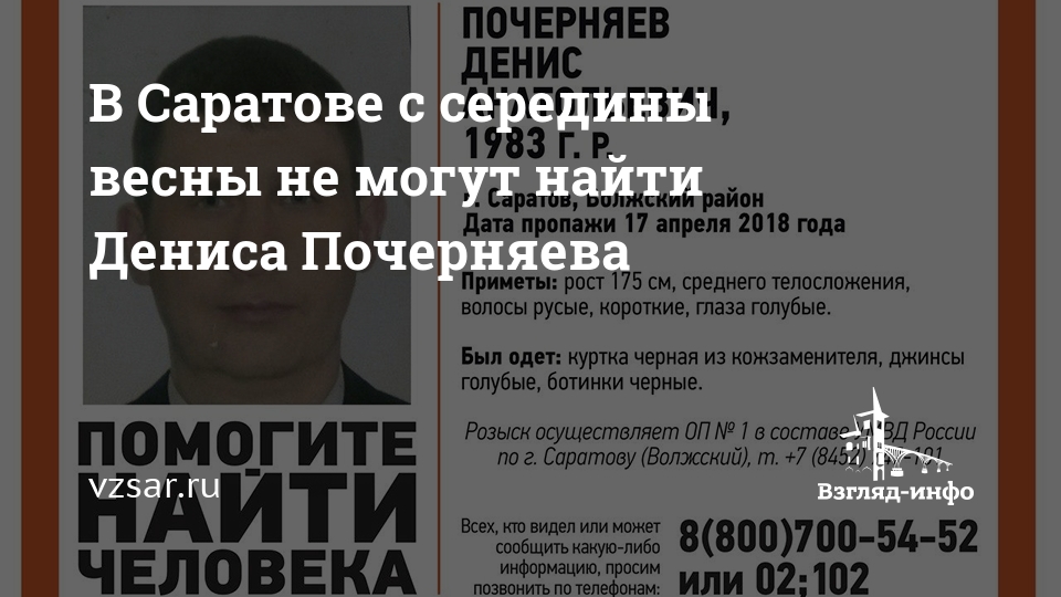 Всех, кому что-либо известно о судьбе пропавшего, просят обращаться по телефонам 8-800-700-54-52 или 02, с мобильного – 102.