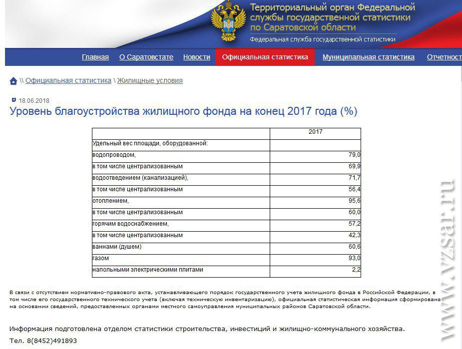 Также ведомство обнародовало цифры по уровню благоустройства жилья саратовцев.