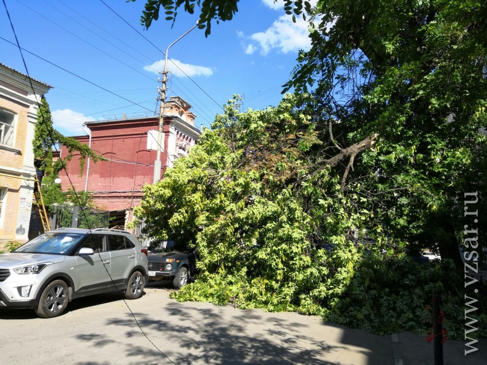 Сегодня в центре Саратова рухнуло еще одно старое дерево. Об этом сообщают очевидцы в социальных сетях.
