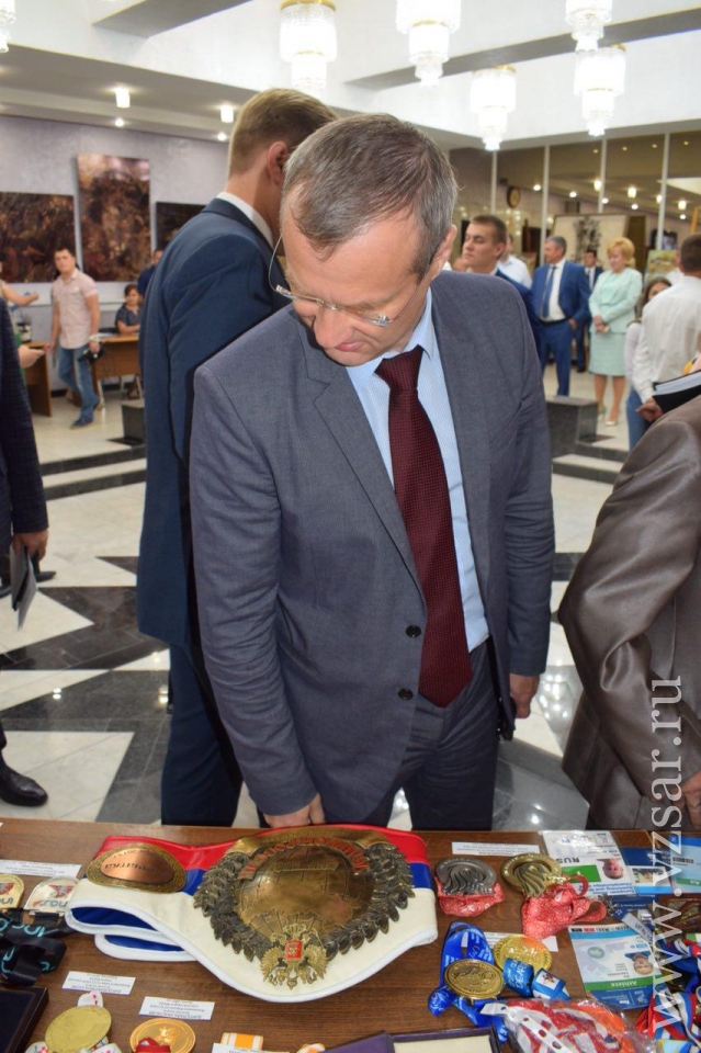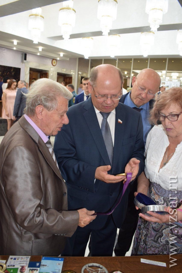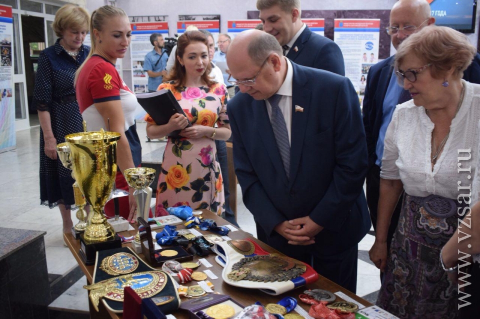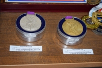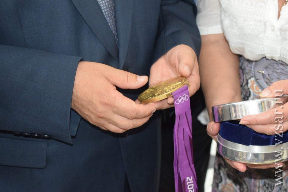 Председатель Саратовской областной думы Иван Кузьмин прикоснулся к золотой олимпийской медали Ильи Захарова. Это произошло сегодня во время выставки в региональном парламенте, посвященной спортивным достижениям. Спикер парламента подошел к столу, где представлены награды прославленного спортсмена.