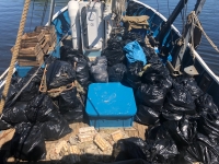 На одном из островов был организован так называемый "штаб": с него людей развозили на различные точки сбора мусора.
