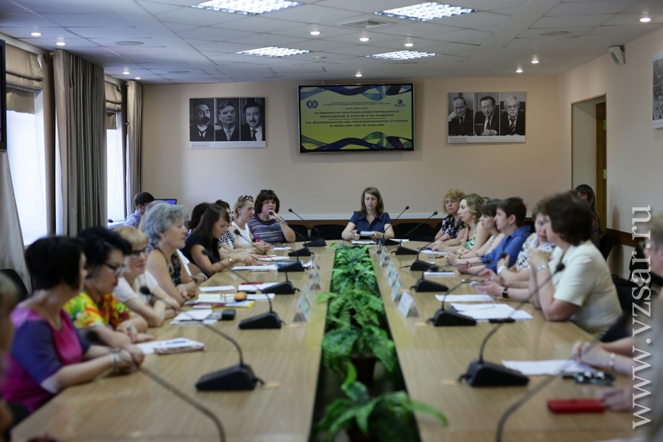 Исследователи из Констанца Рената Герстенлауэр и Вольфганг Карл Герстенлауэр приняли участие в работе круглого стола "Особенности практико-ориентированного образования в России и за рубежом". Участниками мероприятия стали председатель комитета по образованию администрации Саратова Лариса Ревуцкая, профессорско-преподавательский состав и студенты вуза, директора и учителя немецкого языка школ Саратова.