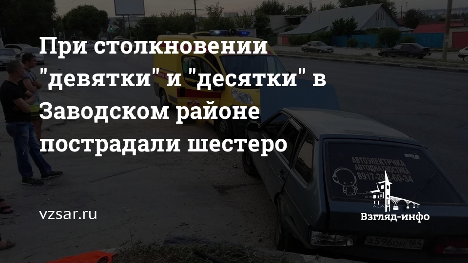 При столкновении "девятки" и "десятки" в Заводском районе пострадали шестеро