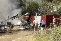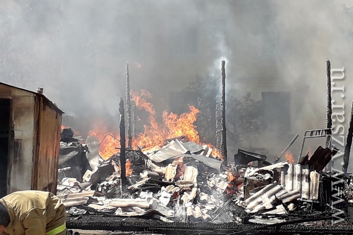 По сообщению очевидцев, загорелись гаражи и рядом расположенные сараи.