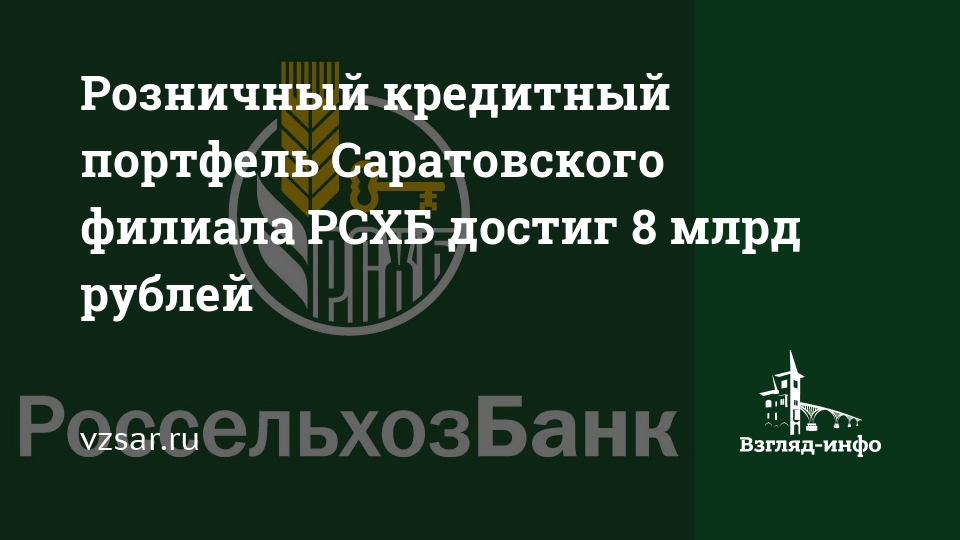 Розничный кредитный портфель Саратовского филиала РСХБ достиг 8 млрд рублей