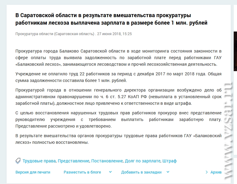 ГАУ "Балаковский лесхоз" не оплатило труд 22 работников за период с декабря 2017 по март 2018 года. Сумма долга превысила миллион рублей.