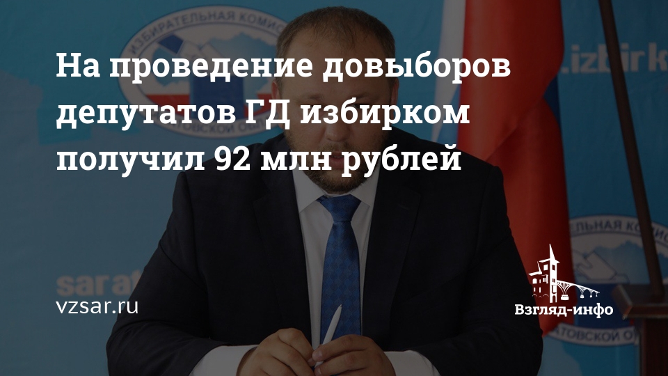 Владимир Писарюк сообщил, что на проведение дополнительных выборов депутатов ГД РФ поступило 92 миллиона рублей.