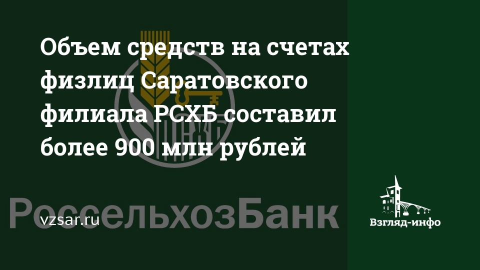 Объем средств на счетах физлиц Саратовского филиала РСХБ составил более 900 млн рублей