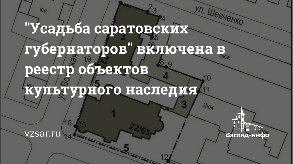 Речь идет о трех зданиях: № 22 по улице Вольская и №№ 65 и 67 по улице Мичурина. По этим адресам расположились здание губернской канцелярии, дом саратовских губернаторов и усадебный дом Рейнеке соответственно. Теперь все объекты включены в единый государственных реестр объектов культурного наследия народов РФ в категории объекта культурного наследия регионального значения.