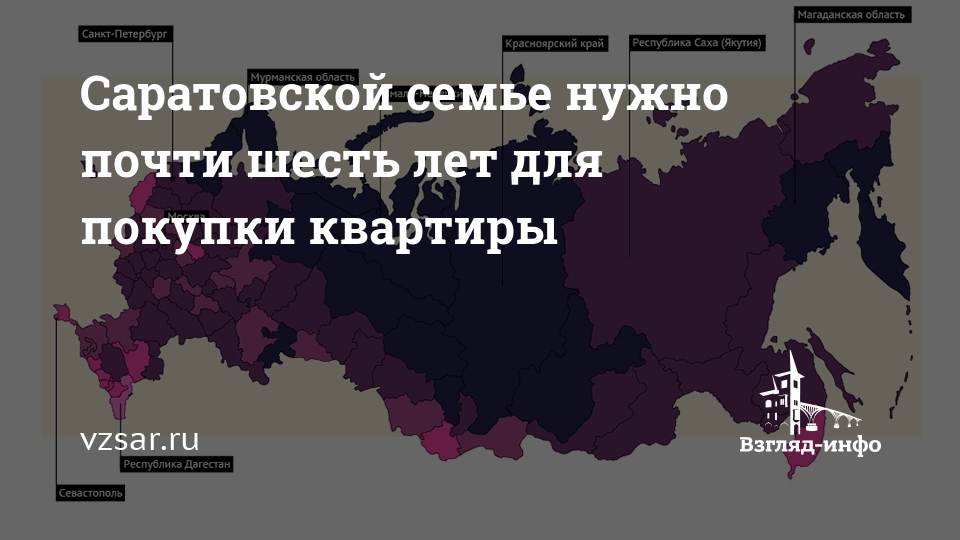 Среди 84 регионов Саратовская область заняла 51-е место. Сегодня для покупки жилья в нашем регионе семье необходимо копить 5,8 лет на типовую квартиру в 54 кв.м ценою 1,8 млн рублей.