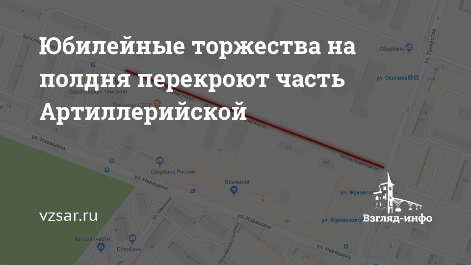 С целью обеспечения безопасности дорожного движения с 8.00 до 14.00 на участке Артиллерийской от улицы Танкистов до здания Саратовской таможни будет ограничено движение и стоянка транспорта.