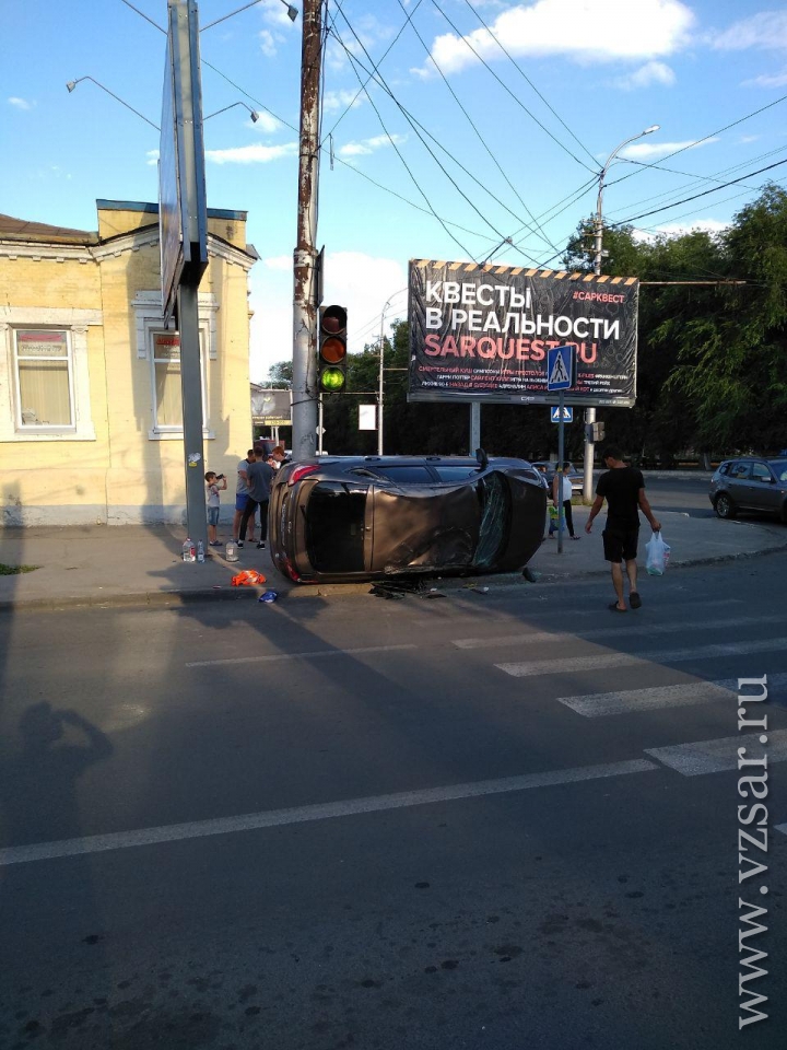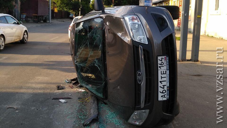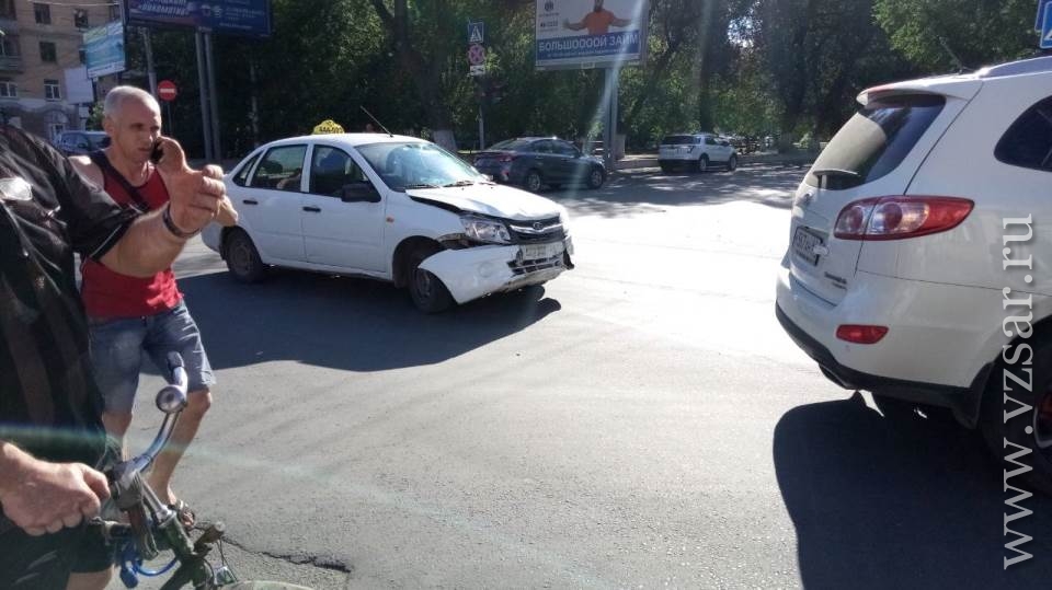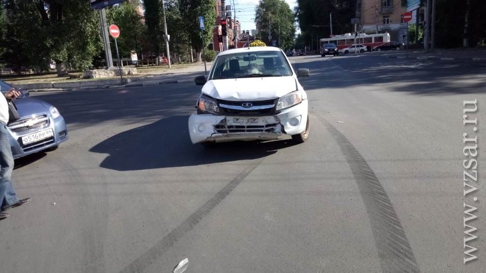 Сегодня в центре Саратова произошло серьезное ДТП. На пересечении улиц Университетская и Большая Горная столкнулись два автомобиля "Лада Гранта".