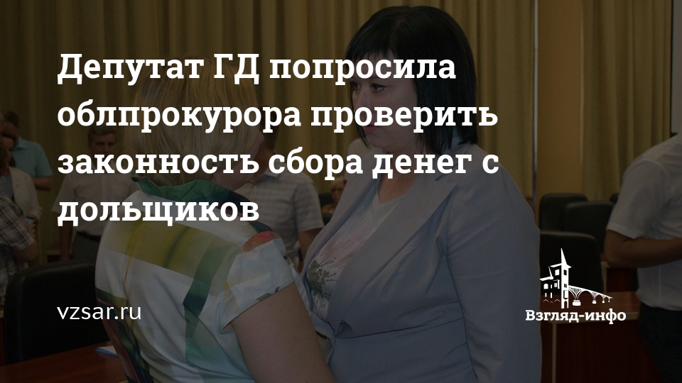 Депутат ГД попросила облпрокурора проверить законность сбора денег с дольщиков