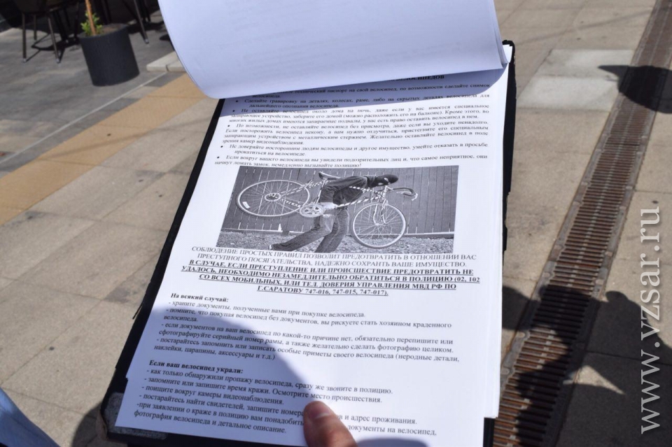 Сегодня сотрудники отдела полиции № 1 Саратова (Волжский район) провели профилактическую акцию, посвященную борьбе с кражами велосипедов.