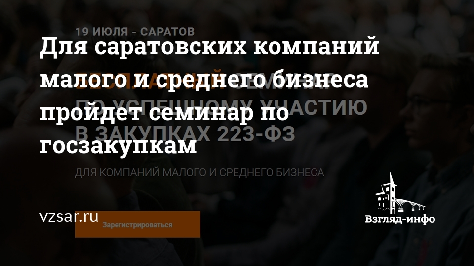 В Саратове готовится крупное мероприятие для представителей малого и среднего бизнеса. 19 июля АО "Федеральная корпорация по развитию малого и среднего предпринимательства" (корпорация МСП) при поддержке областного правительства проводит семинар по участию представителей малого и среднего бизнеса в закупках в соответствии с ФЗ № 223 "О закупках товаров, работ, услуг отдельными видами юридических лиц".