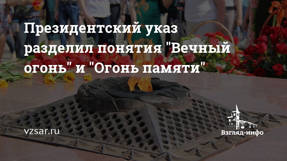 В тексте говорится, что "Вечный огонь – это составная часть воинского захоронения, мемориального сооружения, которая обеспечивает постоянное горение огня". "Огнем памяти" предлагается считать часть воинского захоронения, мемориального сооружения, которая обеспечивает возможность периодического горения огня, например, в памятные даты и иные даты, регионального и местного значения.