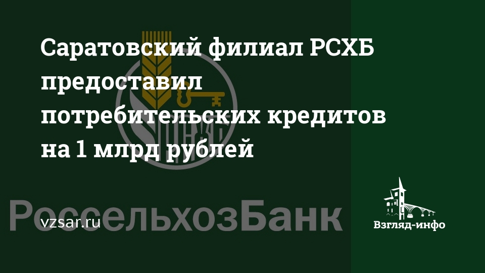 Саратовский филиал РСХБ предоставил потребительских кредитов на 1 млрд рублей